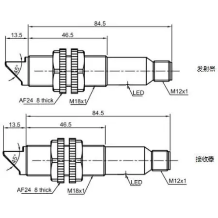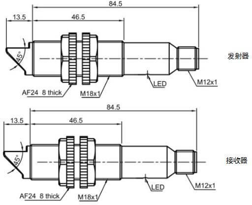 PR18S-TM10ATC-E2 LANBAO - Оптический датчик световой барьер: приемник, M18, сухой контакт, до 10 м