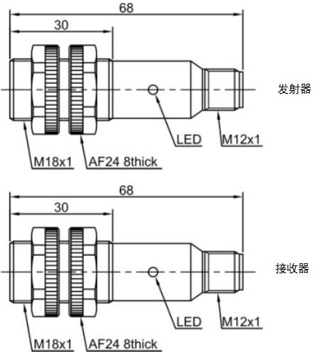 PR18S-TM20DPR-E2 LANBAO - Оптический датчик световой барьер: приемник, M18, 1xНО, 1xНЗ, PNP, до 20 м