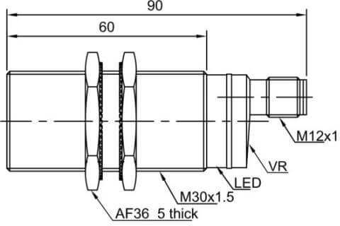 Дискретный выход: сухой контакт • Диапазон измерения: 5000 мм • Электрическое подключение: разъём M12x1 • Крепежная резьба: M30x1.5 • Класс защиты: IP67 • Рабочее напряжение: 20 ÷ 250 V AC • Материал корпуса: латунь никелированная