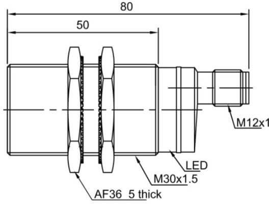 Дискретный выход: 1xНО, 1xНЗ, PNP • Диапазон измерения: 5000 мм • Электрическое подключение: разъём M12x1 • Крепежная резьба: M30x1.5 • Класс защиты: IP67 • Рабочее напряжение: 12 ÷ 24 V DC • Материал корпуса: латунь никелированная