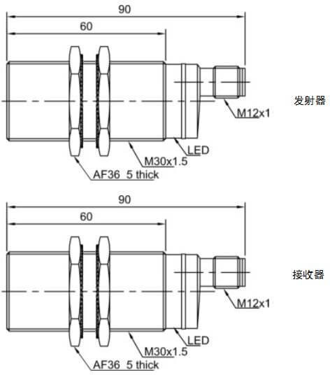 PR30-TM20ATC-E2 LANBAO - Оптический датчик световой барьер: приемник, M30, сухой контакт, до 20 м