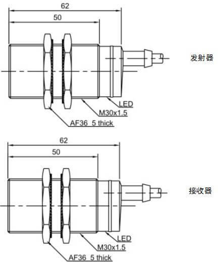 PR30-TM20DNR LANBAO - Оптический датчик световой барьер: приемник, M30, 1xНО, 1xНЗ, NPN, до 20 м