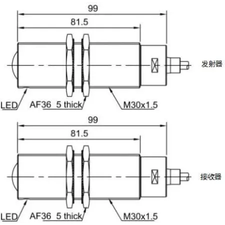 PR30L-TM150DEB LANBAO - Оптический датчик световой барьер: приемник, M30, PNP/NPN, до 150 м