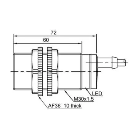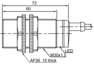Дискретный выход: сухой контакт • Диапазон измерения: 5000 мм • Электрическое подключение: кабель • Длина кабеля: 2м • Крепежная резьба: M30x1.5 • Класс защиты: IP67 • Рабочее напряжение: 20 ÷ 250 V AC • Материал корпуса: пластик