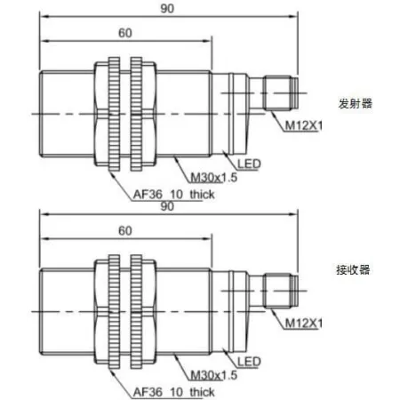 PR30S-TM20ATO-E2 LANBAO - Оптический датчик световой барьер: приемник, M30, сухой контакт, до 20 м