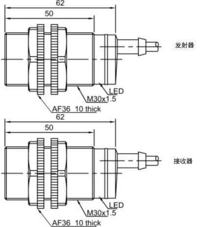 PR30S-TM20DNC LANBAO - Оптический датчик световой барьер: приемник, M30, NPN, до 20 м