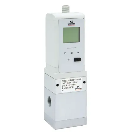 Серия PRE доступна в двух типоразмерах с различными опциями, включая подключение по протоколу IO-Link, наличие или отсутствие дисплея, функции аварийного сброса давления, позволяющей сбросить воздух из объекта управления при отсутствии электрического питания.