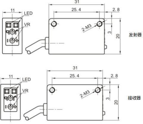 - датчик типа световой барьер: приемник