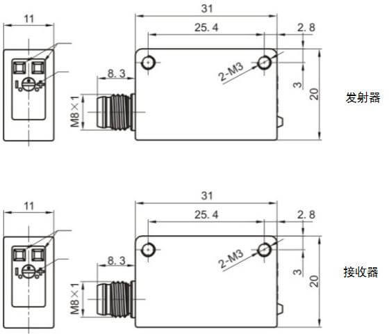 - датчик типа световой барьер: приемник