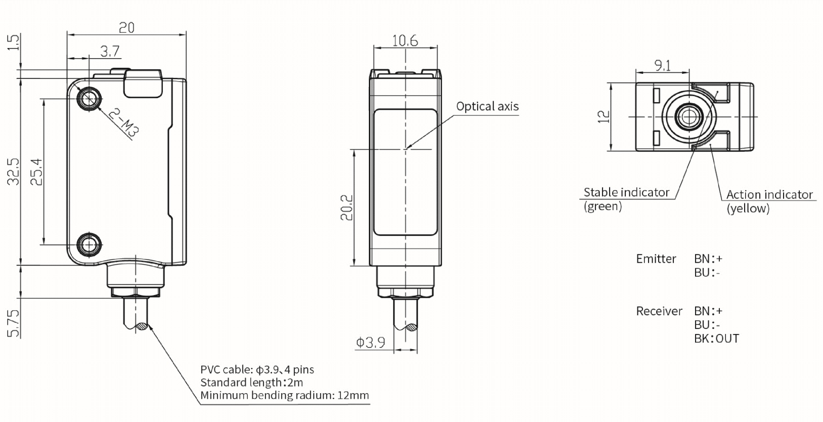 - датчик типа световой барьер: приемник