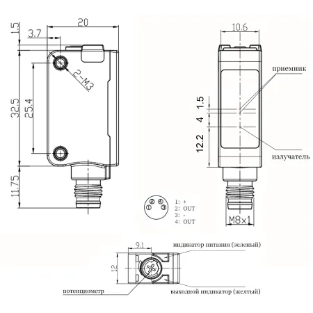 Дискретный выход: 1xНО, 1xНЗ, NPN • Диапазон измерения: 150 мм • Электрическое подключение: разъём M8x1 • Класс защиты: IP67 • Рабочее напряжение: 12 ÷ 24 V DC • Материал корпуса: пластик