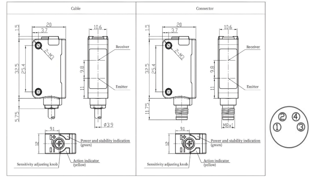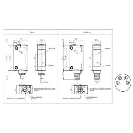 Дискретный выход: НО/НЗ, PNP • Диапазон измерения: 300 мм • Электрическое подключение: кабель • Длина кабеля: 2м • Класс защиты: IP67 • Рабочее напряжение: 10 ÷ 30 V DC • Материал корпуса: пластик