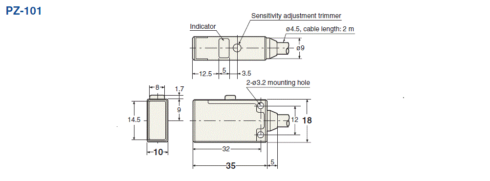 Дискретный выход: НО/НЗ, PNP • Диапазон измерения: 100 мм • Электрическое подключение: кабель • Длина кабеля: 2м • Класс защиты: IP67 • Рабочее напряжение: 12 ÷ 24 V DC • Материал корпуса: пластик армированный