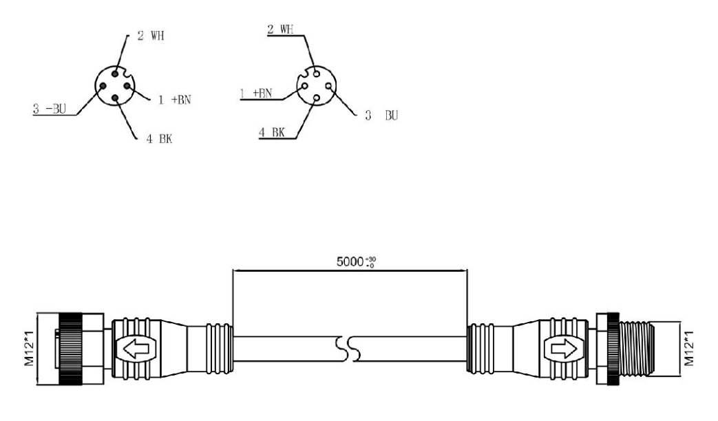 Электрическое подключение: разъём M12x1 4-пин папа, кабель, разъём M12x1 4-пин мама • Длина кабеля: 5м • Класс защиты: IP67 • Рабочее напряжение: 0 ÷ 250 V AC/DC • Материал корпуса: поливинилхлорид (ПВХ, PVC)