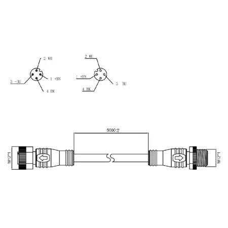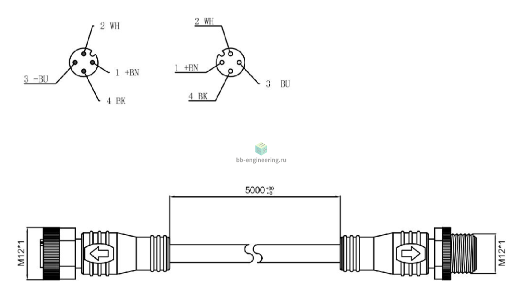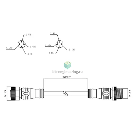 разъём M12x1 4-пин папа, кабель, разъём M12x1 4-пин мама