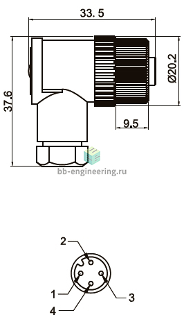 Электрическое подключение: разъём M12x1 4-пин мама • Класс защиты: IP67 • Рабочее напряжение: 0 ÷ 250 V AC/DC • Материал корпуса: поливинилхлорид (ПВХ, PVC)
