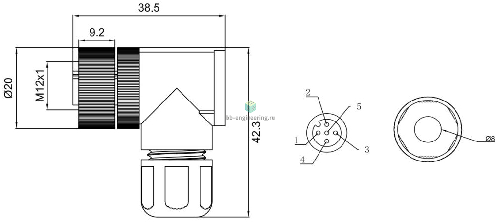 разъём M12x1 5-пин мама