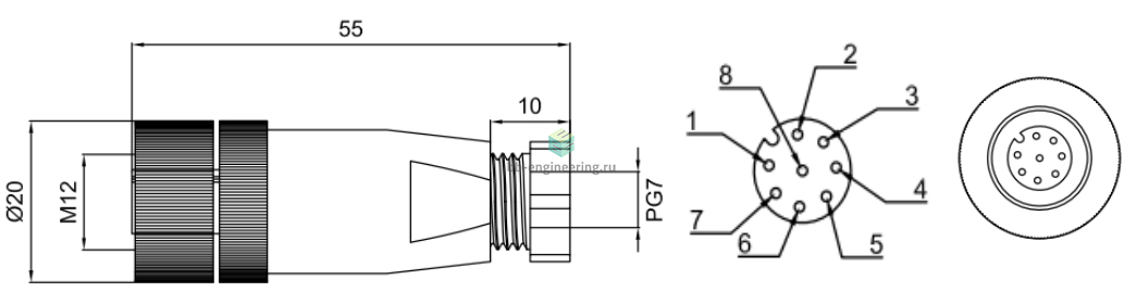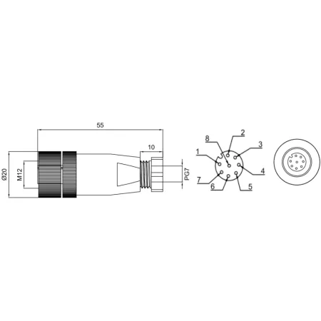 Электрическое подключение: разъём M12x1 8-пин мама • Класс защиты: IP67 • Рабочее напряжение: 0 ÷ 250 V AC/DC