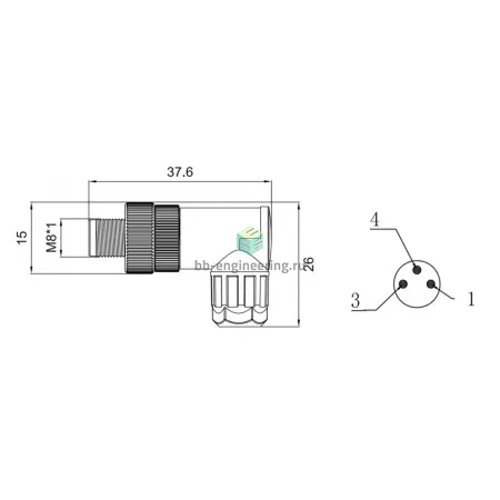 Электрическое подключение: разъём M8x1 3-пин папа • Класс защиты: IP67 • Рабочее напряжение: 0 ÷ 60 V AC/DC • Материал корпуса: поливинилхлорид (ПВХ, PVC)