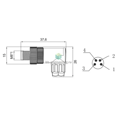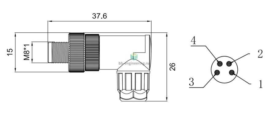 Электрическое подключение: разъём M8x1 4-пин папа • Класс защиты: IP67 • Рабочее напряжение: 0 ÷ 60 V AC/DC • Материал корпуса: поливинилхлорид (ПВХ, PVC)