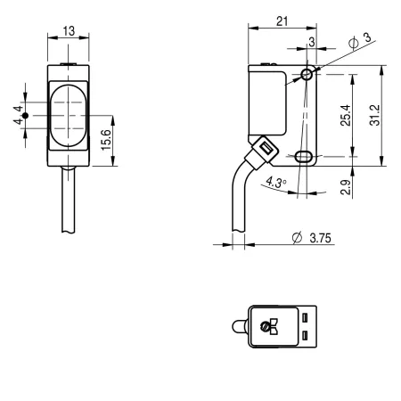 - датчик типа световой барьер: комплект передатчик + приемник