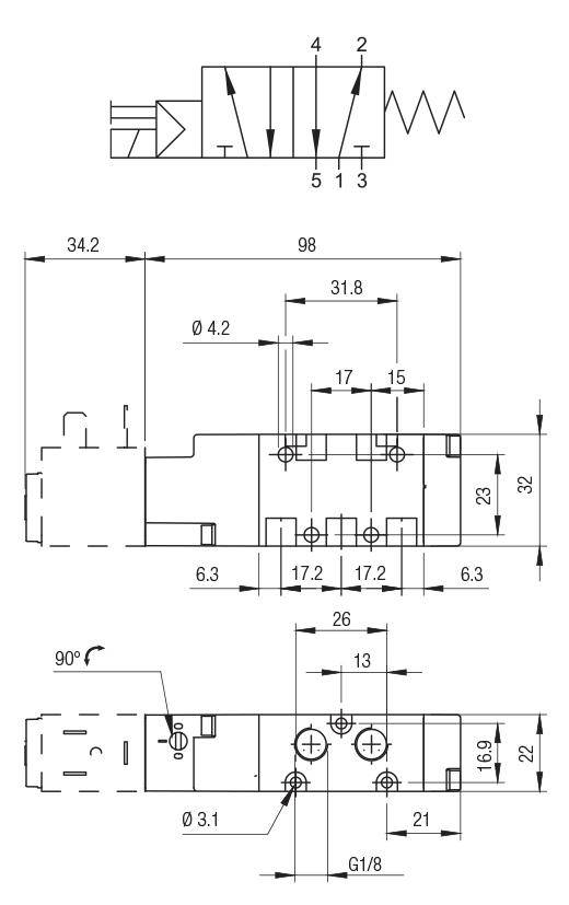 3/2 распределитель прямого действия с электромагнитным управлением.