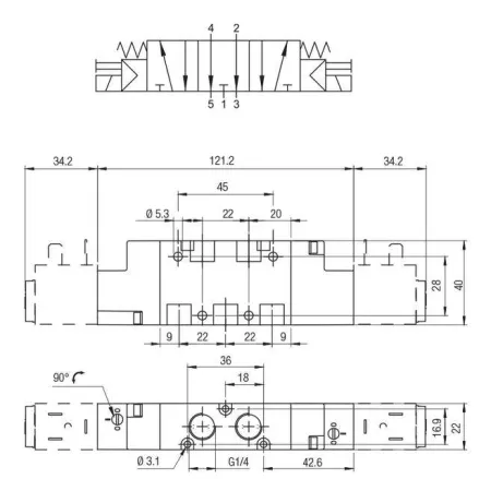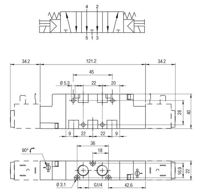 3/2 распределитель с электромагнитным управлением и пилотным каскадом.