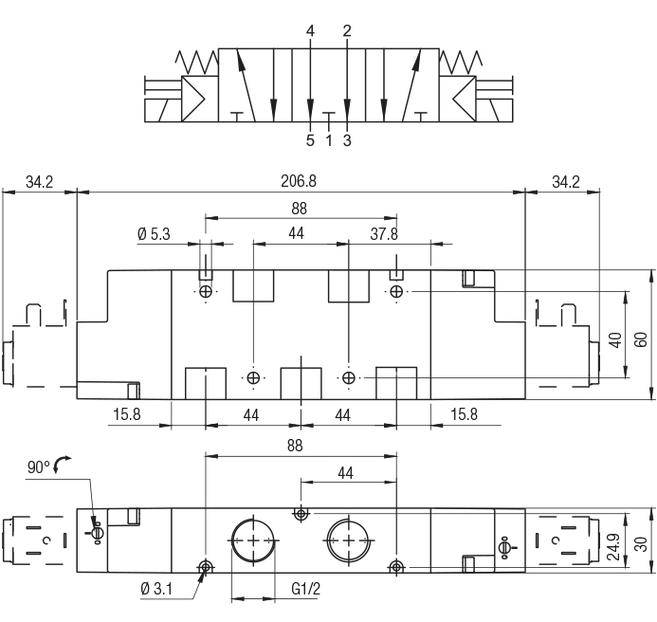 3/2 распределитель прямого действия с электромагнитным управлением.