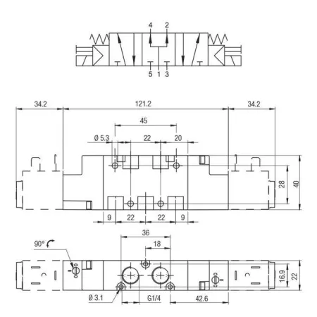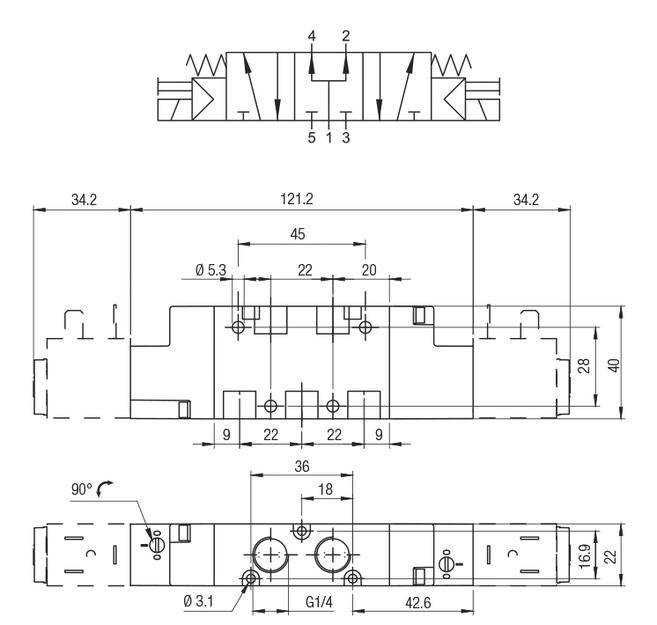 3/2 распределитель с электромагнитным управлением и пилотным каскадом.