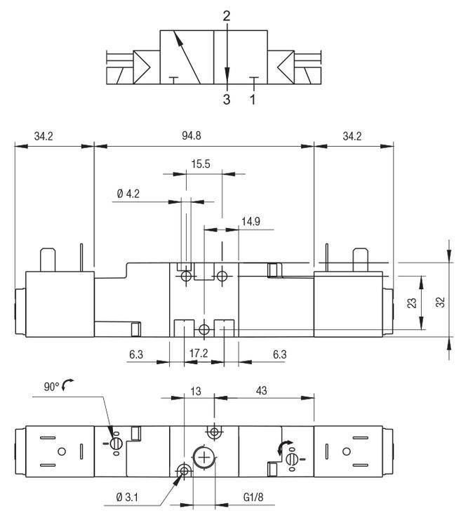 3/2 распределитель прямого действия с электромагнитным управлением.