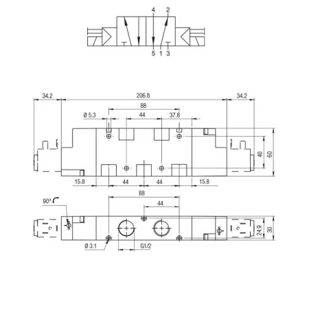 3/2 распределитель прямого действия с электромагнитным управлением.