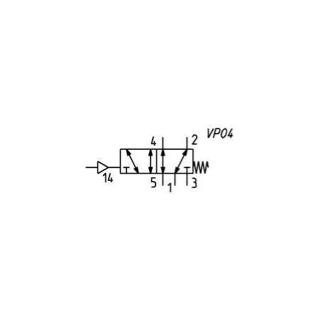 3/2 распределитель с электромагнитным управлением и пилотным каскадом.