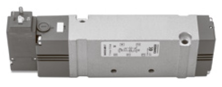 3/2 распределитель с электромагнитным управлением и пилотным каскадом.
