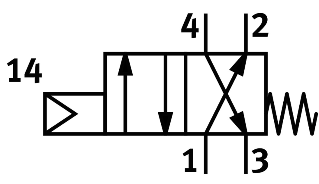 3/2 распределитель с электромагнитным управлением и пилотным каскадом.
