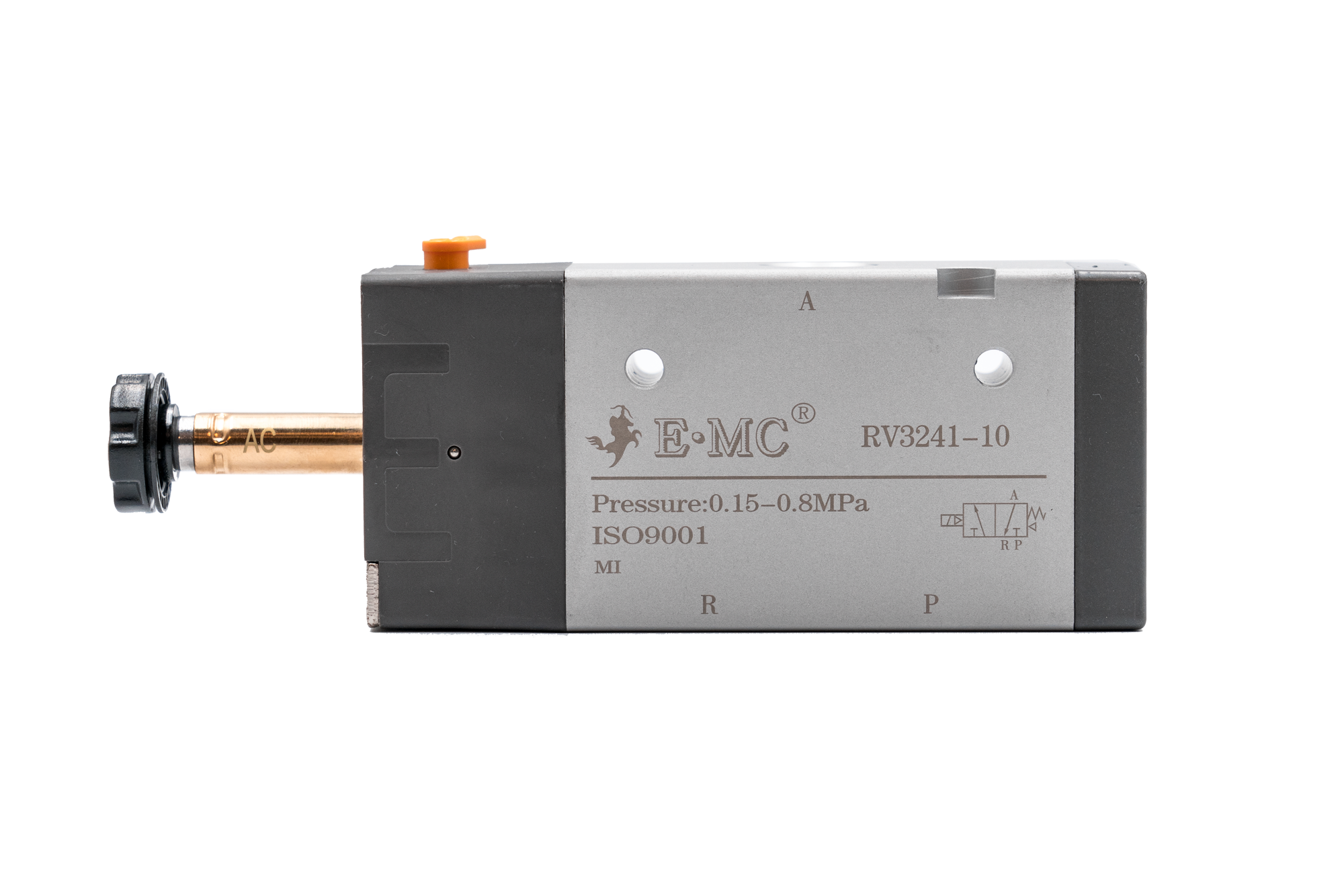 3/2 распределитель с электромагнитным управлением и пилотным каскадом.