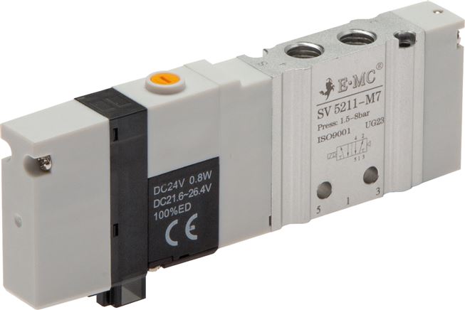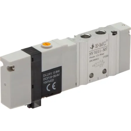 - SV: резьбовые выходы, позволяющие подключать распределители индивидуально, вкрутив фитинги, или установить на коллекторную плиту с общим питанием и выхлопом. Электрическое подключение осуществляется индивидуально через 3-контактный микро-разъём.