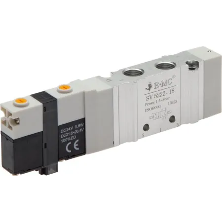 - SV: резьбовые выходы, позволяющие подключать распределители индивидуально, вкрутив фитинги, или установить на коллекторную плиту с общим питанием и выхлопом. Электрическое подключение осуществляется индивидуально через 3-контактный микро-разъём.