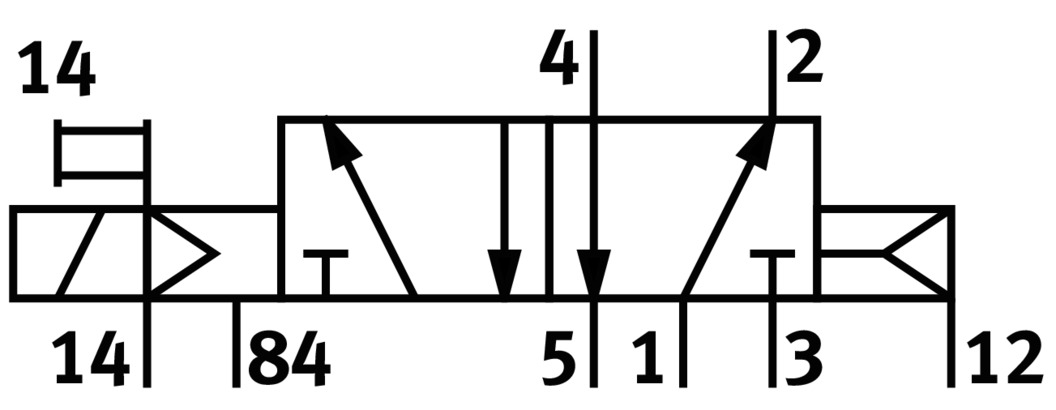3/2 распределитель с электромагнитным управлением и пилотным каскадом.
