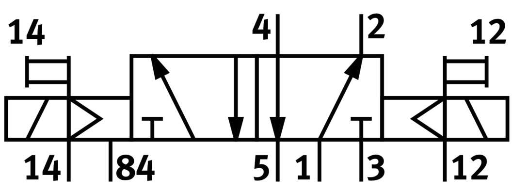 3/2 распределитель с электромагнитным управлением и пилотным каскадом.