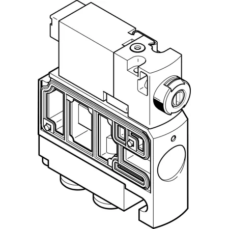 3/2 распределитель с электромагнитным управлением и пилотным каскадом.