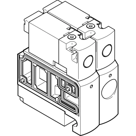 3/2 распределитель с электромагнитным управлением и пилотным каскадом.