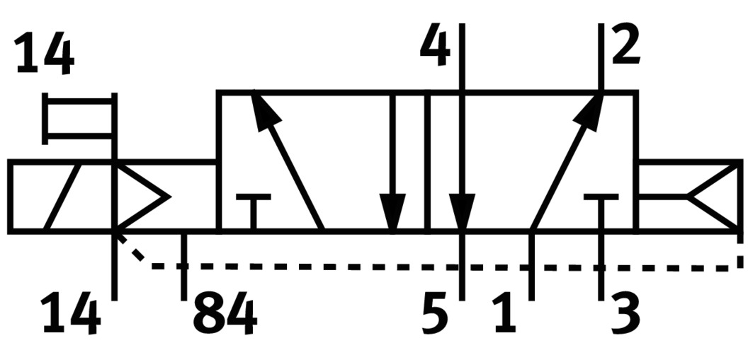 3/2 распределитель с электромагнитным управлением и пилотным каскадом.