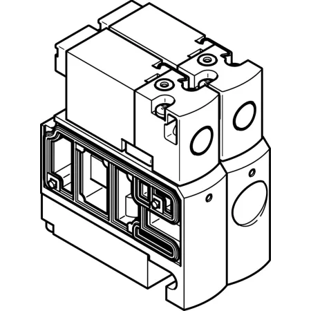 3/2 распределитель с электромагнитным управлением и пилотным каскадом.