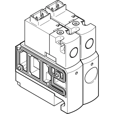 3/2 распределитель с электромагнитным управлением и пилотным каскадом.