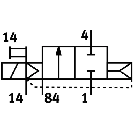 3/2 распределитель с электромагнитным управлением и пилотным каскадом.