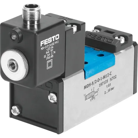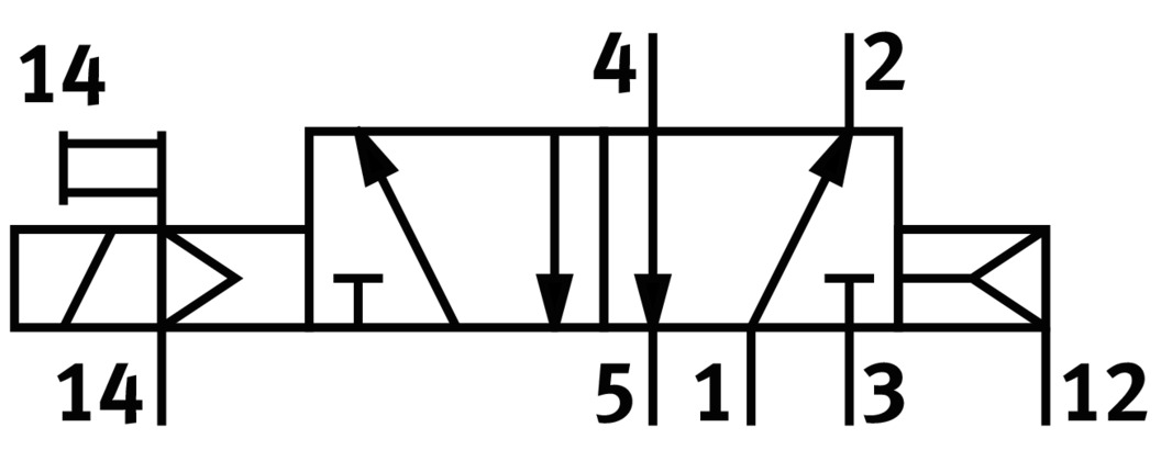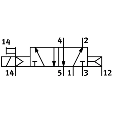 3/2 распределитель с электромагнитным управлением и пилотным каскадом.