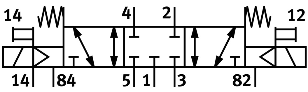 3/2 распределитель с электромагнитным управлением и пилотным каскадом.