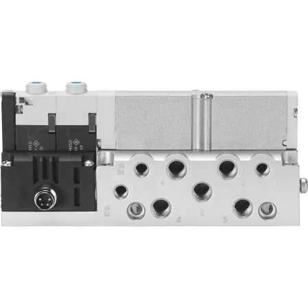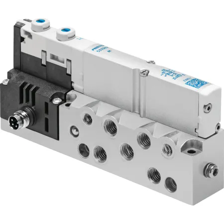 3/2 распределитель с электромагнитным управлением и пилотным каскадом.