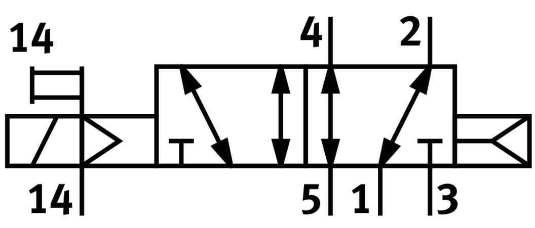 3/2 распределитель с электромагнитным управлением и пилотным каскадом.