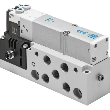 3/2 распределитель с электромагнитным управлением и пилотным каскадом.